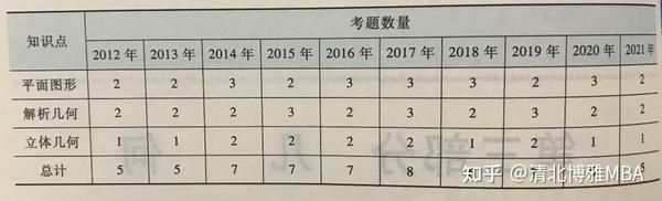 几何部分在试卷中占比比较大,是必考考点,主要考查方向有平面图形、平面解析几何和空间立体几何。近几年,出题难度略有增加,题目的数量也有所上涨,出题形式灵活多变。