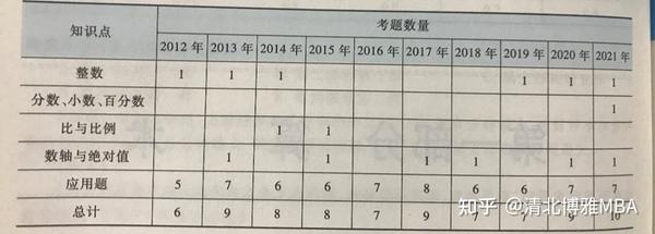 近十年,考查最多的题型是整数、绝对值和应用题,而分数、小数和百分数考查较少。比例与绝对值是考试的必考点,其中绝对值相关题目是考试难点。考生不仅要熟练掌握主要概念之间的关系,还需要具有灵活运用的能力。