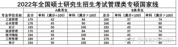 在以上7个专业中,MBA招生人数最多,分数线最低,对于基础较差的学生来说,上岸难度小一些。2022年研究生考试管理类7个专业A区和B区分数线如下: