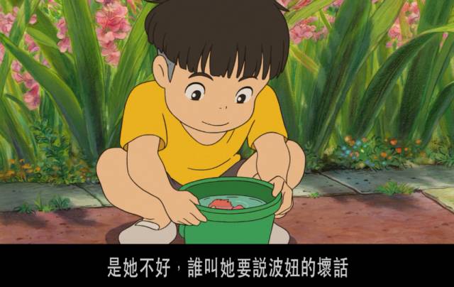 宗介不觉得波妞做错了,他把波妞抱走,还跟波妞说:是她不好,谁叫她说你的坏话。