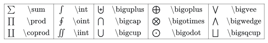 这些符号可以在其上方或下方显示式子。