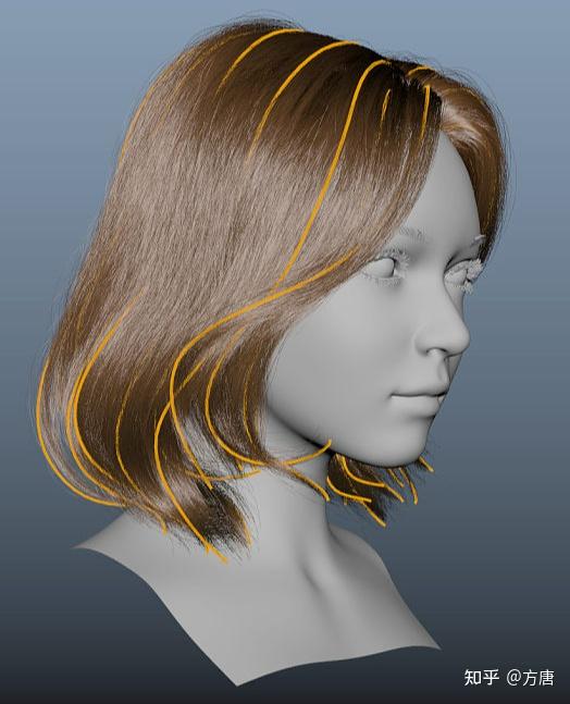 发丝模型即只制作每根头发的引导线,在交给引擎进行头发渲染时再由引擎根据发丝的引导线生成每根头发的Triangle List。发丝模型的出现是为了解决头发物理模拟的问题的,从渲染角度上看,发片和发丝都可以让技美“精细化作业”来实现渲染出类似的效果,但发丝模型能很好地做物理计算,实现头发的海飞丝效果。 发丝模型制作复杂,需要美工针对头部模型上对每根头发进行种植,在没有物理计算时会成“爆炸头”,有特别的头发形状的,还得要求美工种植的发丝模型每根都是已经做好弯曲定型的,加大美工的操作难度。