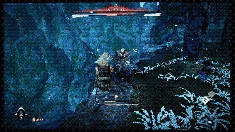 因为根本没啥时间玩,我还卡在第一个BOSS张梁这里,打张梁的时候背后有蒙眼少年负责射箭,还有时不时提醒你小心。