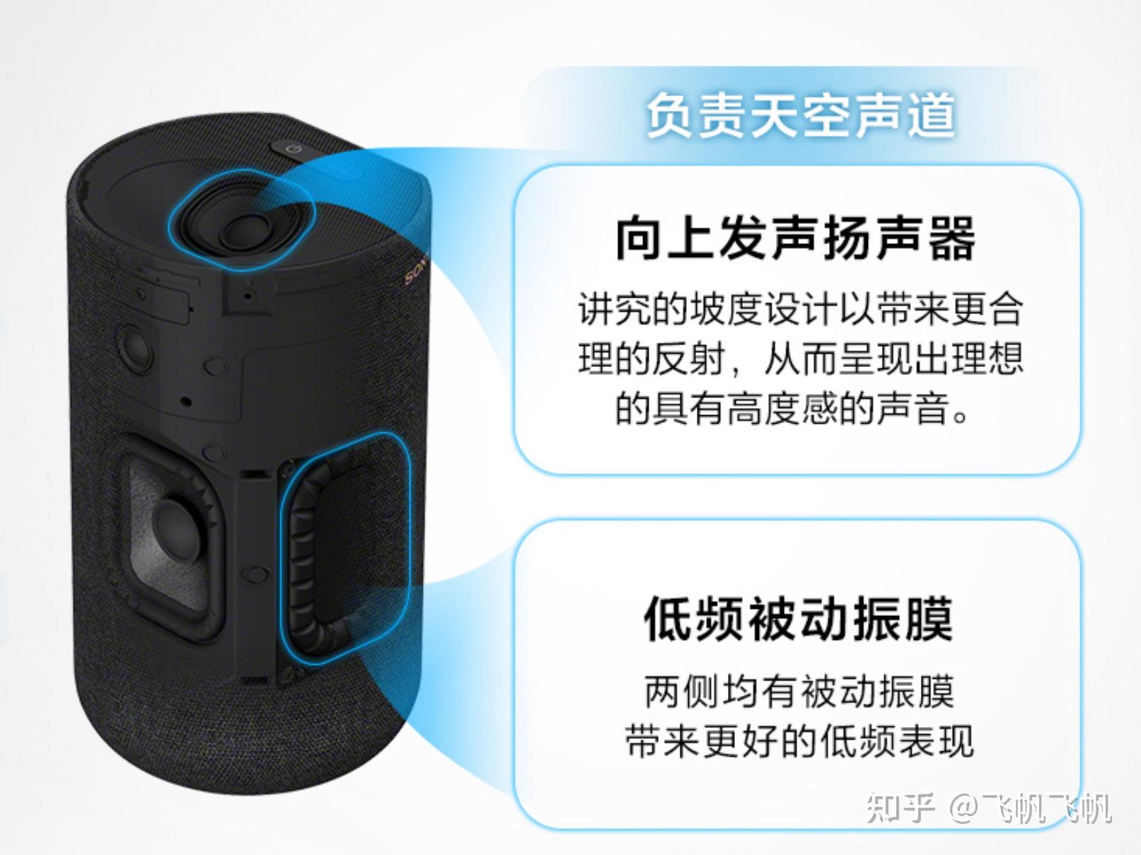 第一是具有天空喇叭,可以在后置扬声器增强天空环绕效果,进一步增强360SSM的声场;第二是内置锂电池,不需要插着电使用,方便后置区域没有插座的用户;第三是有低频振膜,能加强低频效果。