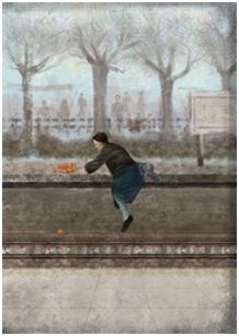 他用两手攀着上面,两脚再向上缩;他肥胖的身子向左微倾,显出努力的样子。这时我看见他的背影,我的泪很快地流下来了。