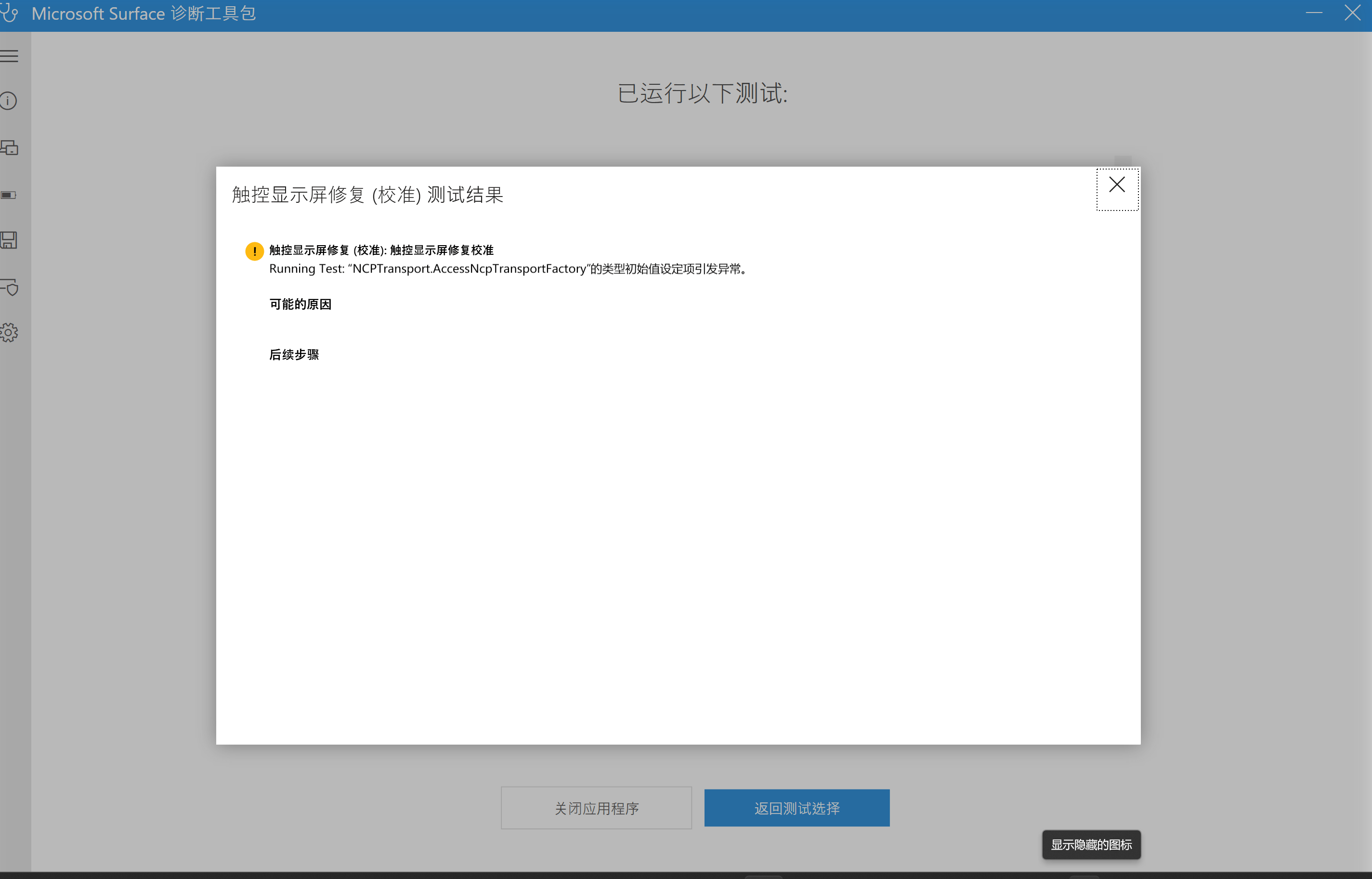 在完全阅读了您发布的内容后,我注意到您已经针对这一触控笔的触控校准设置闪退的现象运行了Surface诊断工具。提示NCPTransport.AccessNcpTransportFactory设定项引发异常。