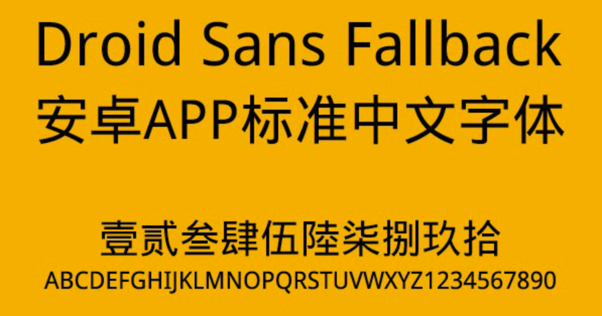 Droid Sans Fallback 是当年 Google 为推出 Android 设备时,委托台湾华康科技(威锋数位)为东亚各国字符设计的一款字体,承袭了 DFHeiW5-A 的设计风格。