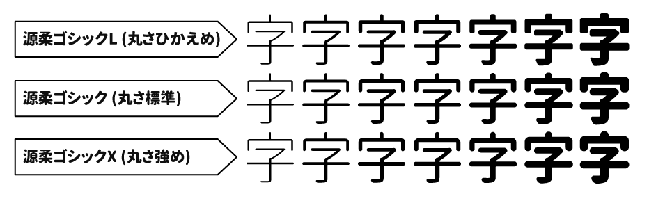 这款字体有三种不同圆角程度的版本,以及七种不同粗细的版本。