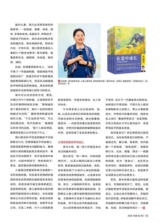 面对儿童,我们必须用生命的价值体系——包括爱、尊重、自由、规则、平等和支持,来爱孩子、养育孩子判断孩子的成长。因为成长的秩序是先构建内在,再去容纳外在,即先有内在,才有外在。我们要首先满足儿童的六个根本性需求:爱与被爱,被重视和关注,被接纳,安全感,被欣赏,规则。