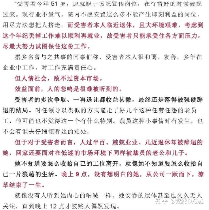 北京某国企设计院的51岁女员工,被辞退后选择轻生,跳楼身亡,离退休年龄只有4年。