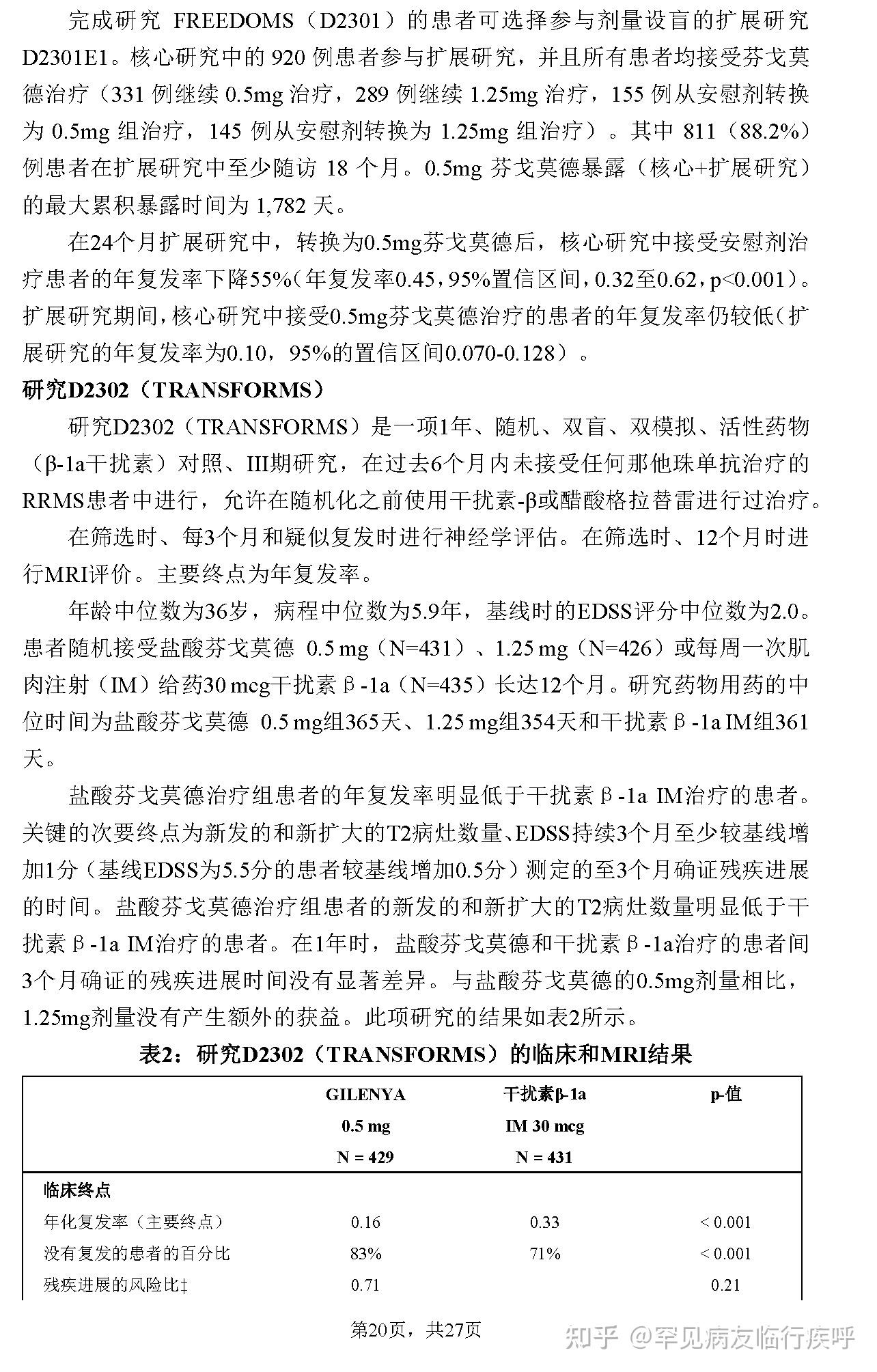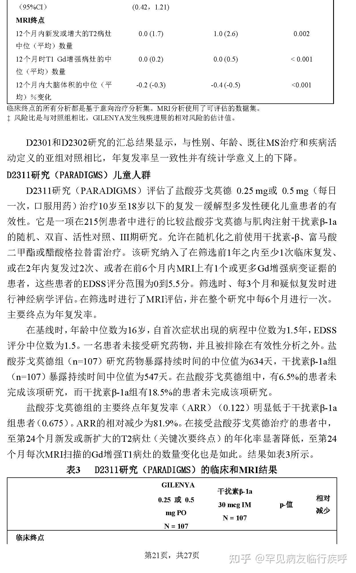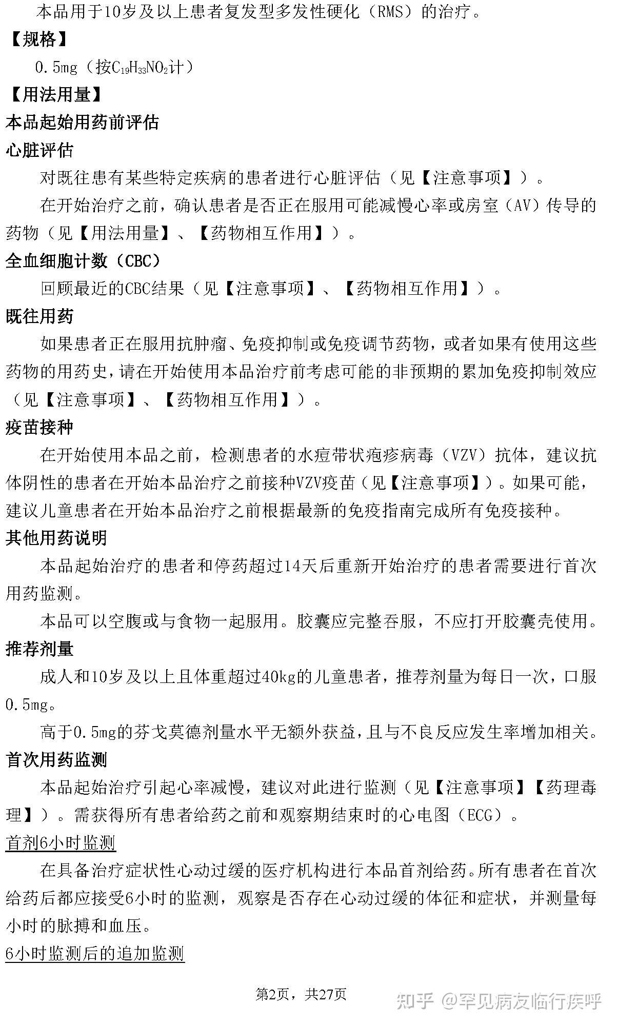 盐酸芬戈莫德胶囊说明书MS多发性硬化Fingolimod Hydrochloride Capsules捷灵亚®GILENYA®DMT请仔细阅读说明书并在医师指导下使用2021.4.30诺华说明书研究 [2]