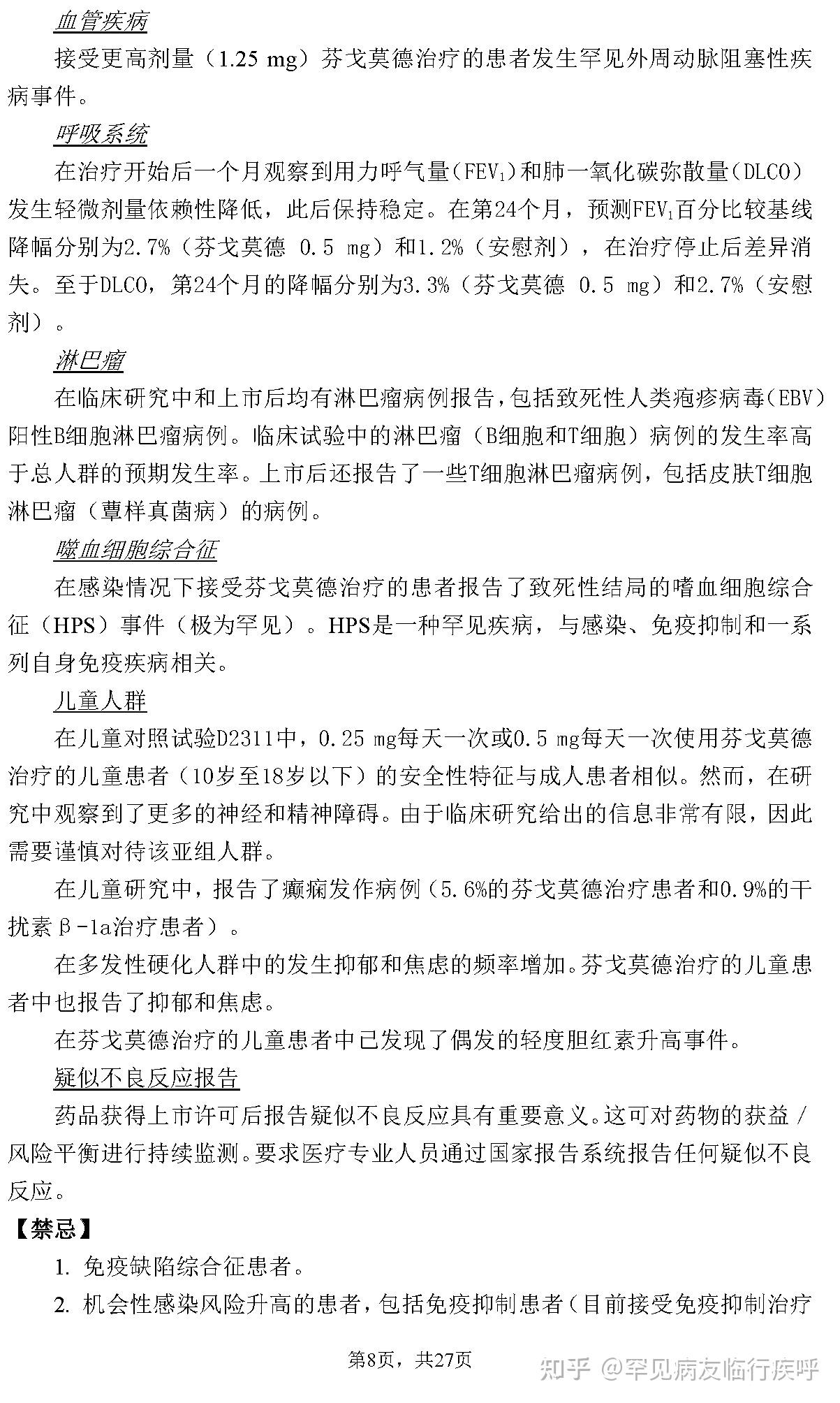 多发性硬化药物说明书Fingolimod芬戈莫德Gilenya®捷灵亚®说明书旧版2021.4.16 [1]