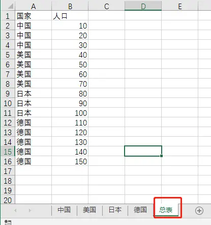 3. 需要拆分的工作表名称改为总表,