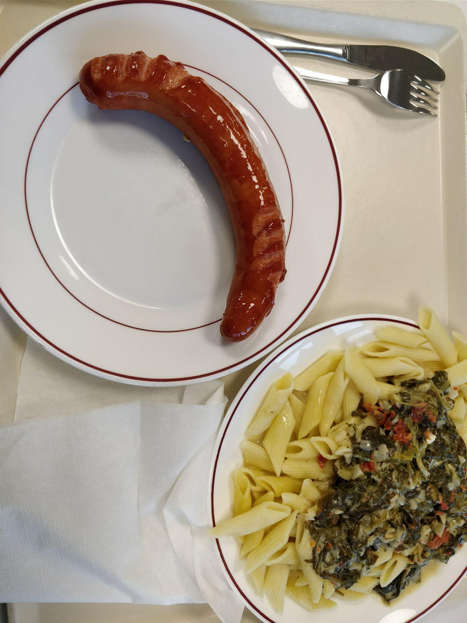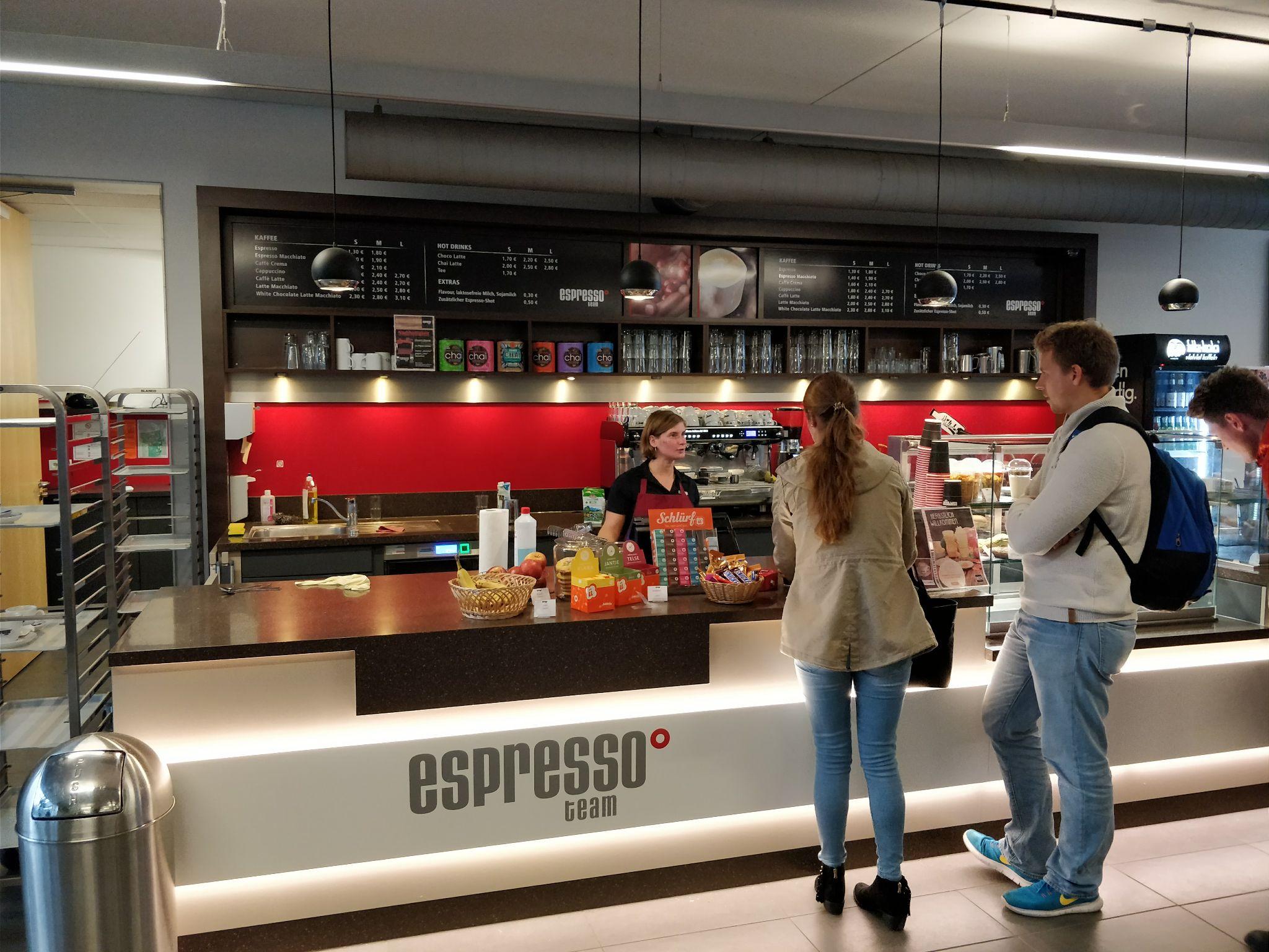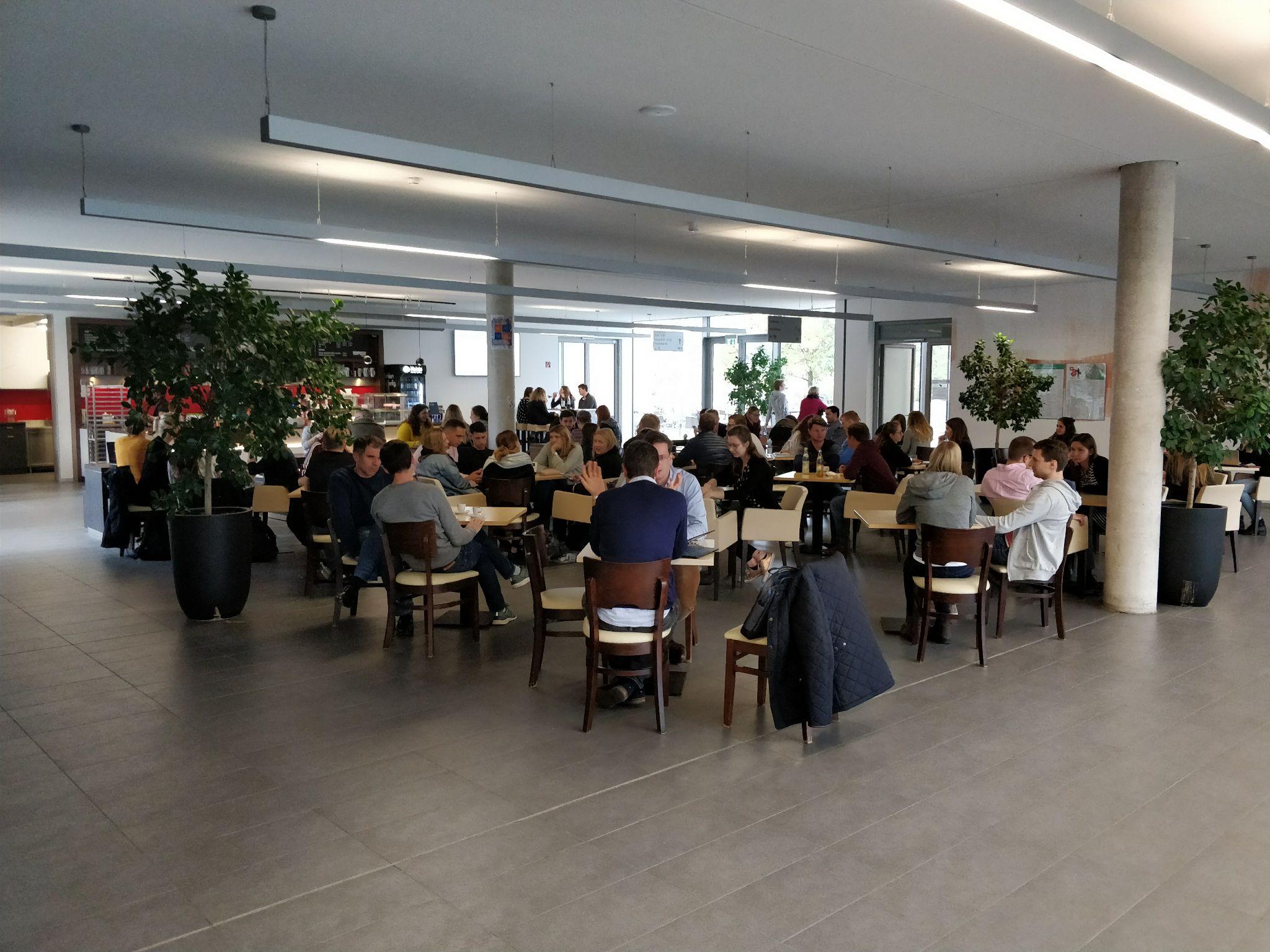吃:学校有两个食堂,一个Hauptmensa主食堂,还有个外墙绿色的小食堂,他们是连在一起的。主食堂只有在周一到周五的中午提供饭菜,而小食堂是周一到周五的中午和晚上都有饭吃,周六的中午也可以去吃。主食堂的菜经常会换新,样式比较多。小食堂基本上就那么几种菜,变化不多。小食堂有烤肠、炸猪排、炸薯条、意面、蔬菜沙拉什么的。