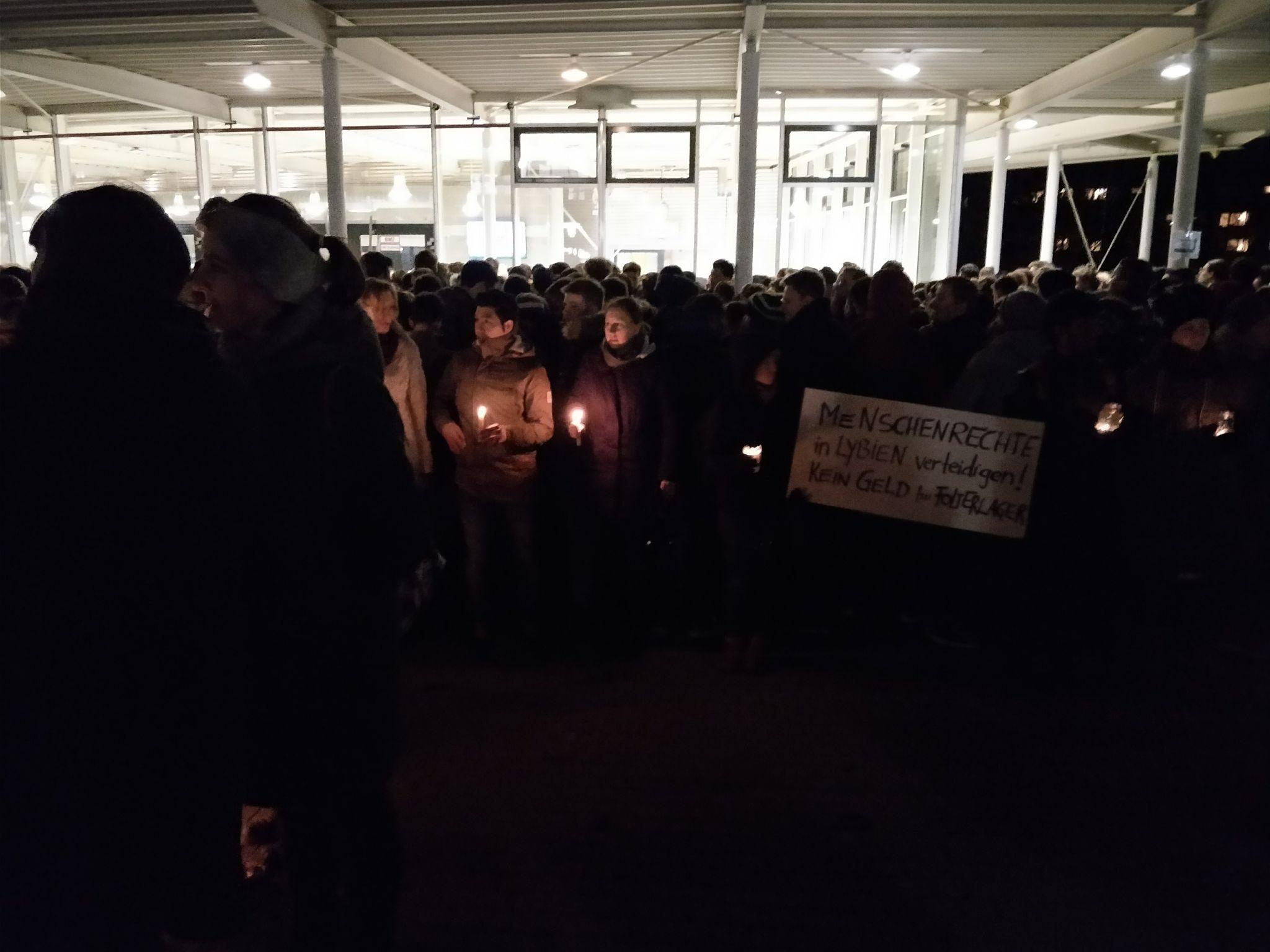 Audimax,圣诞讲座请了德国外交部长来,门口有许多请愿的人。(人太多了,没挤进大厅)