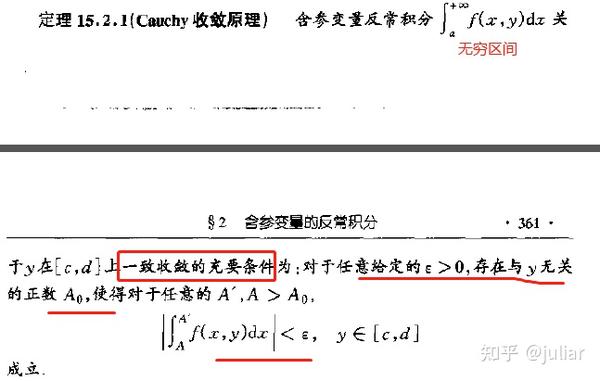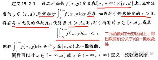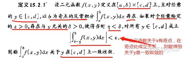 相较于含参变量的常义积分,反常积分加了一致收敛的要求