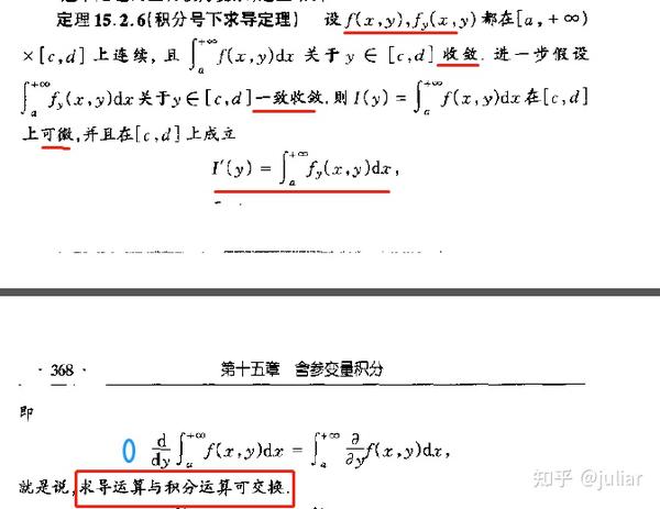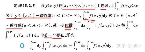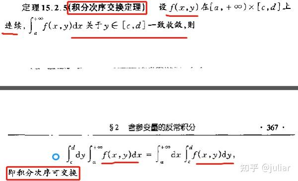 积分次序交换定理 :函数连续、反常积分一致收敛 = > 反常积分的积分次序可交换