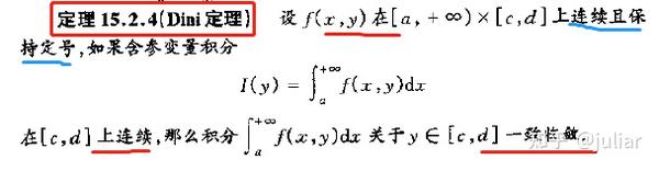 Dini定理 : f(x,y) 连续且保号+ I(y) 连续 => I(y) 一致收敛;