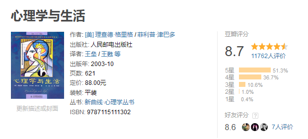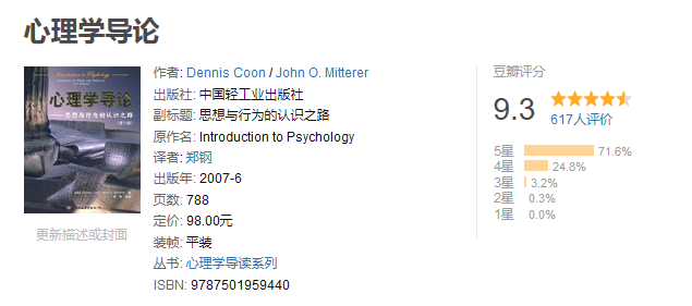 这里推荐一本大学心理学导论教材,豆瓣图书介绍链接 《心理学导论》