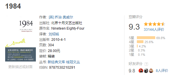 豆瓣图书介绍 《1984》