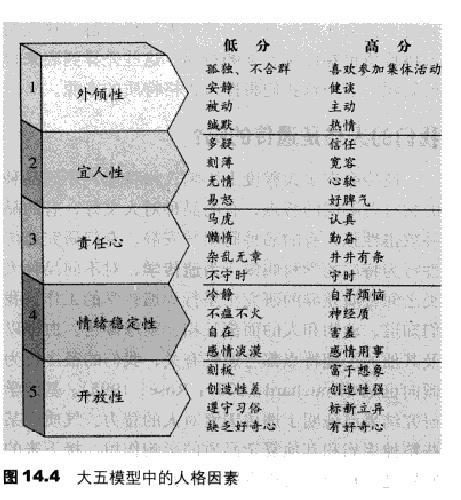 人格是一个人独特的思维、情感和行为模式。一个人过去是什么样的人,现在和将来还是什么样的人,这种一贯性就是由其人格所决定的。书中人格的这一章介绍了四种人格理论。关于衡量人格的 大五模型 更是让我懂得如何对个体人格进行衡量,进而在人之间比较了。