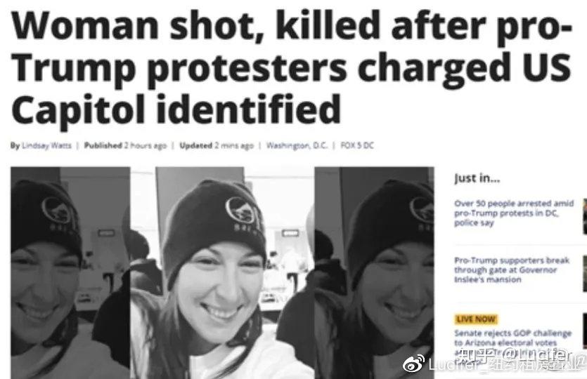 平息叛乱至4人死亡!曾在美国空军服役14年的一名特朗普支持者,在闯入国会众议院的房间时,被一名警方开枪击中身亡。另有3名特朗普的支持者也在抗议中因意外情况而丧生