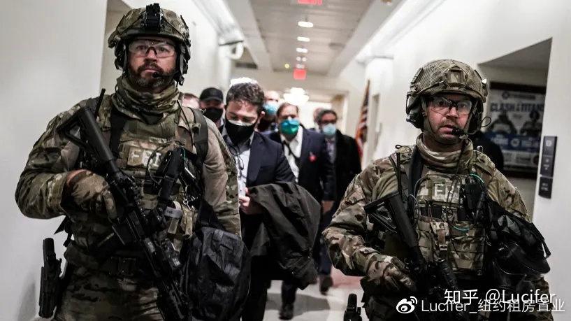 国民警卫队入驻国会控制现场。