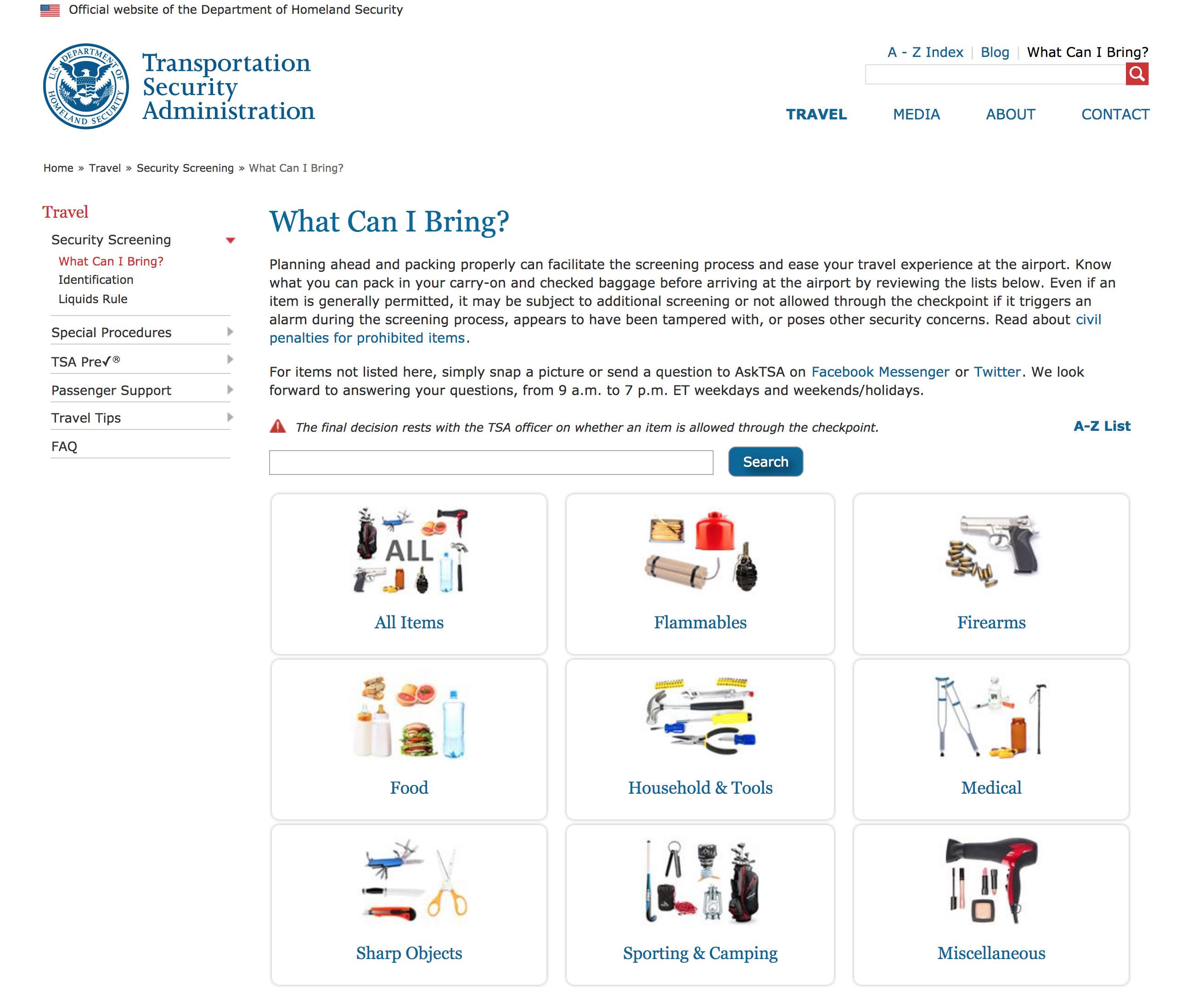 所以下次出行,记得根据飞行的距离和时长调整好出发的时间,如果对于哪些物品可上飞机哪些不可上存在疑问,可以到 TSA 官网查询: https://www. tsa.gov/travel/security -screening/whatcanibring