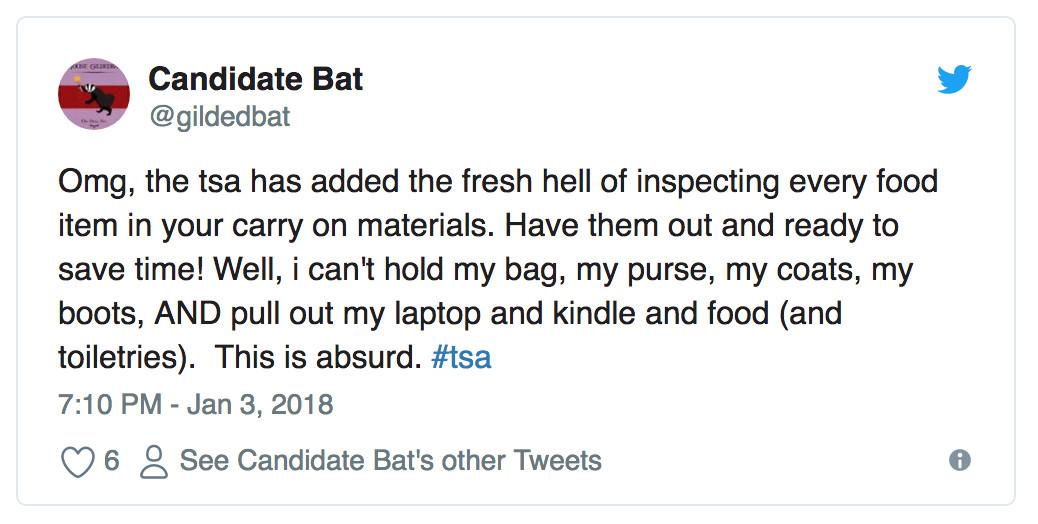 而 TSA(美国运输安全管理局)又开始升级他们的安检举措——食物须从包中取出,放入盒中,单独过安检。