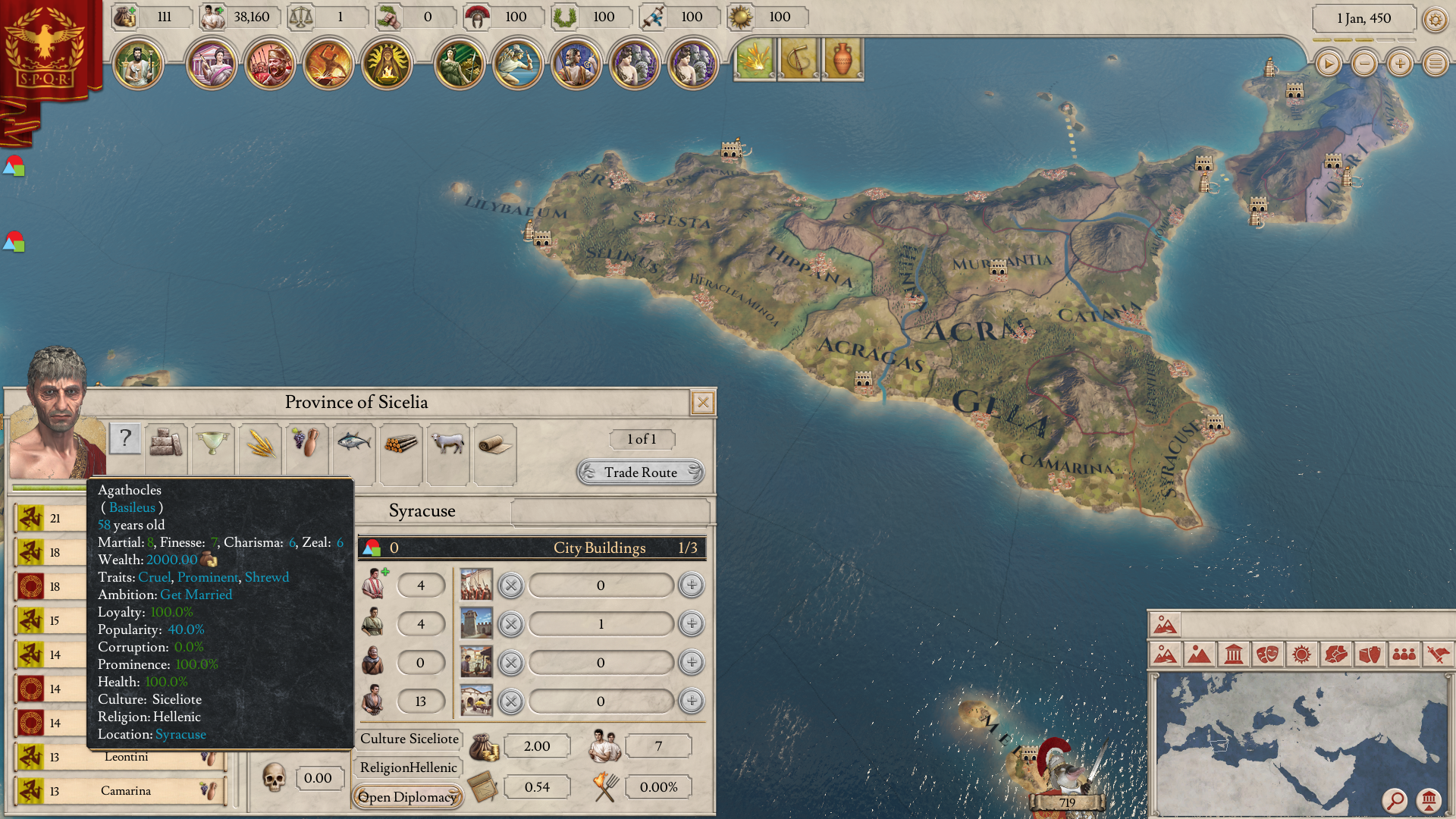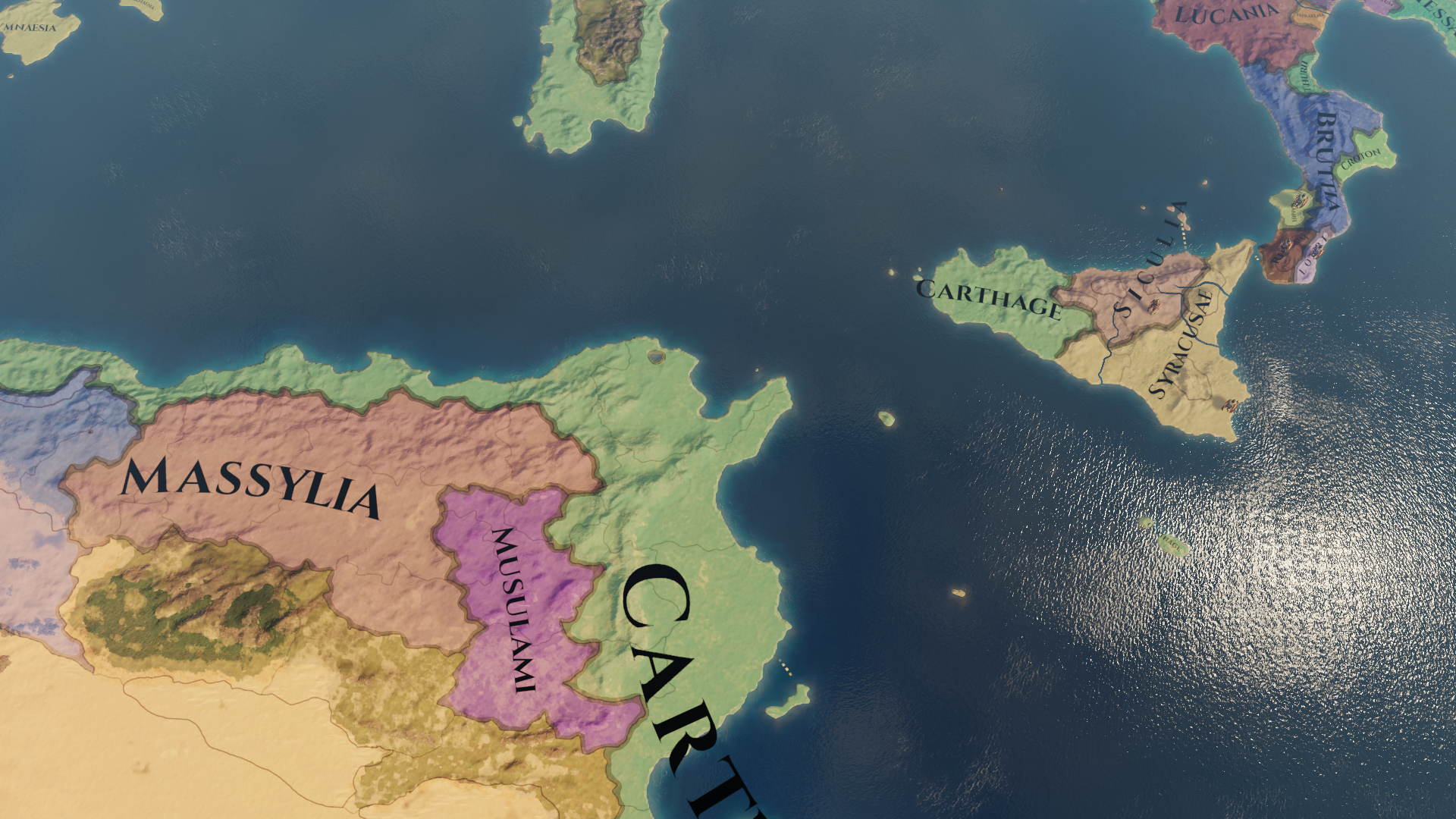 Carthage: Carthage is not a Sicily based power, and we will speak more about them in a future diary. Nonetheless they are one of the most influential playable countries in this region. The population of Carthaginian Sicily is a mix of Carthaginians, native Siculians, and Greeks.