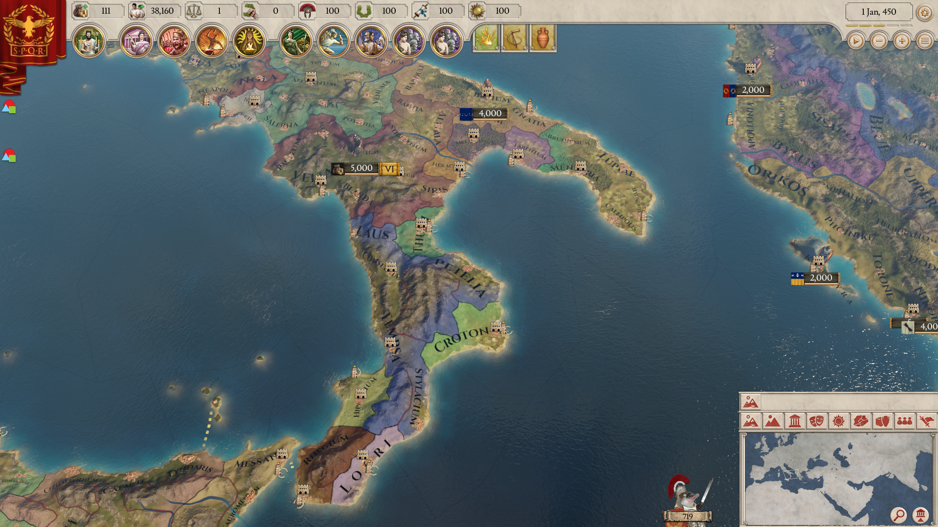 Bruttia: Tribal Kingdom in the far southern tip of Italy. Asserts influence over many of the nearby Greek cities and as such is the main safeguard against any Syracusan expansion in the region.