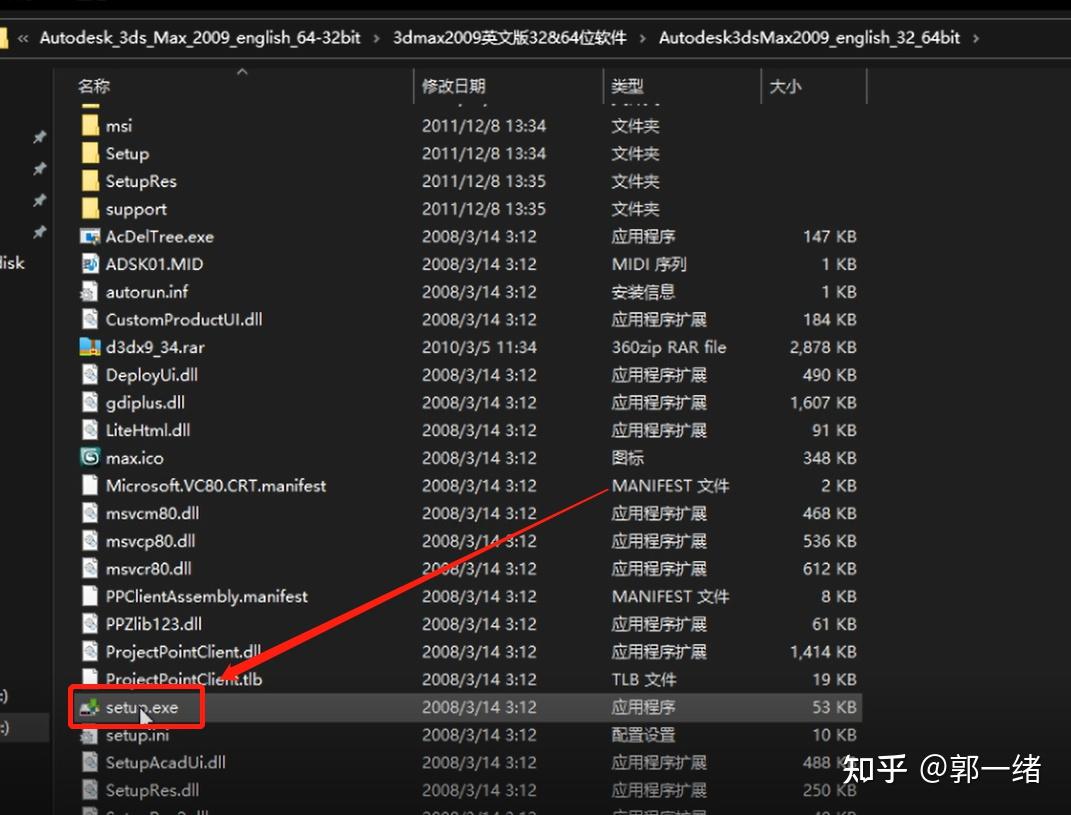 1、找到Autodesk_3ds_max2009文件夹,打开后找到setup.exe双击运行,