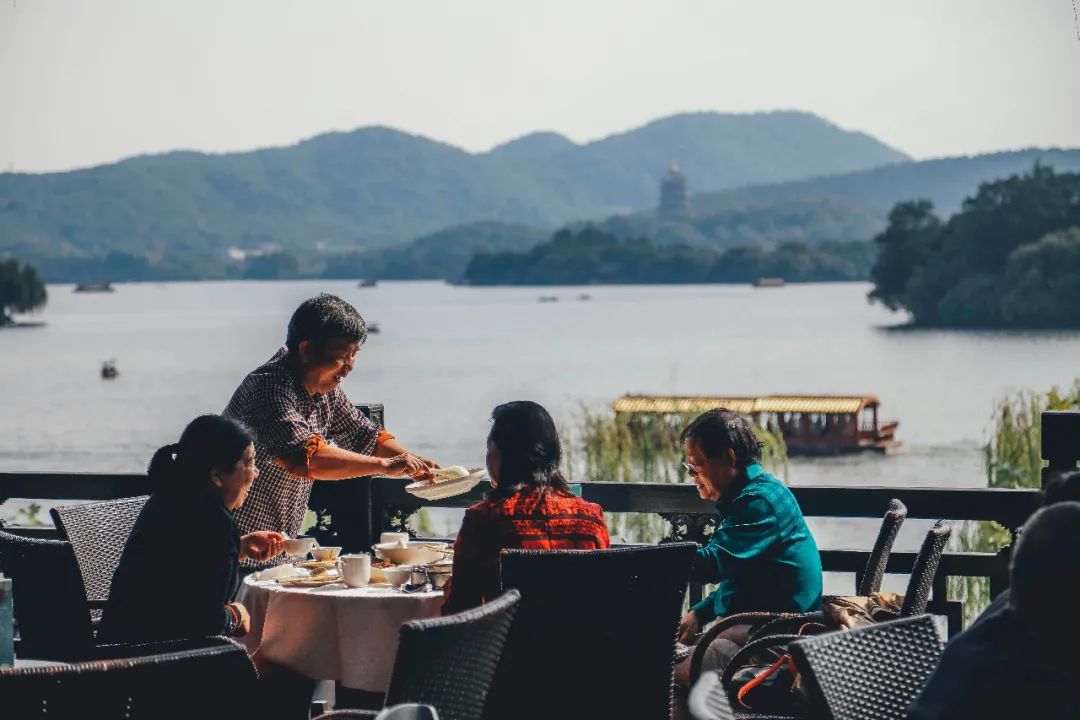 随着我们的游船逐渐往石塔靠近,导游讲起了“湖中有深潭,明月印水渊,石塔来相照,一十八月圆”的奇异景致。中秋时节,当蜡烛在三个石塔中分别点起时,从石塔五个洞中露出的亮光,可以映射出许多月亮,并在湖中投下倒影。“所以大家猜猜一共会有多少轮月亮?”导游日复一日、年复一年地向西湖上的往来游客提问道。就好似在这么多月亮中,能与遥远时空中的苏轼找寻到“但愿人长久,千里共婵娟”的联结。