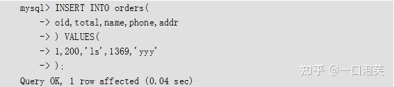 以上执行结果证明插入数据完成。为了进一步验证,使用SELECT语句查看orders表中的数据。