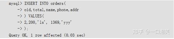 从以上执行结果可以看出,orders表中的数据成功插入。此时再次向表中插入数据,新插入数据的oid仍然为1。