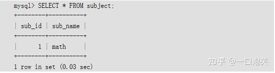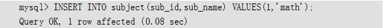 以上执行结果证明了插入数据完成。为了进一步验证,使用SELECT语句查看subject表中的数据。