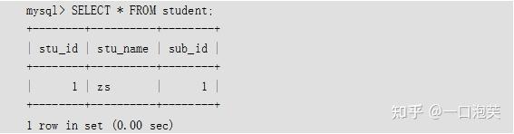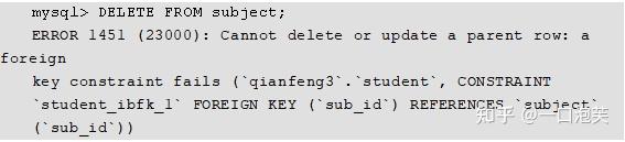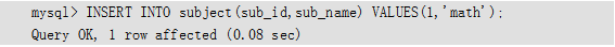 从以上执行结果可以看出,student表中的数据成功插入,表中的sub_id为1,是引用了subject表中sub_id字段的值,然后删除主表subject中的数据。
