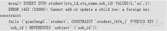 以上执行结果证明了添加外键约束成功。此时,如果先为student表添加数据,则是无法添加的,因为subject表中还没有可以引用的数据。