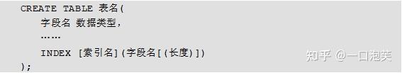 在以上语法格式中,INDEX表示字段的索引,索引名是可选值,括号中的字段名是创建索引的字段,参数长度是可选的,用于表示索引的长度。