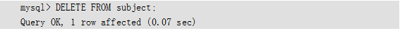 以上执行结果证明插入数据完成。接下来仍然进行前面的实验,直接删除subject表中的数据。