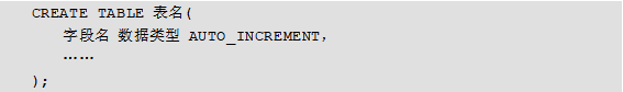 在以上语法格式中,字段名表示需要设置字段值自动增加的列名,列名后跟着数据类型和AUTO_INCREMENT关键字,两者之间用空格隔开。