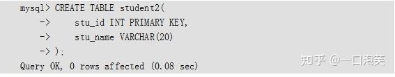 以上执行结果证明定义为主键的字段值不能为NULL,否则会报错。以上是为已经存在的表添加主键约束,实际上,在创建表时同样可以添加主键约束。