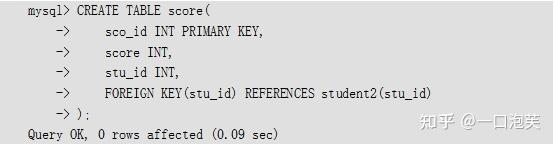 以上执行结果证明student2表创建成功。然后创建分数表,在创建表的同时添加外键约束。