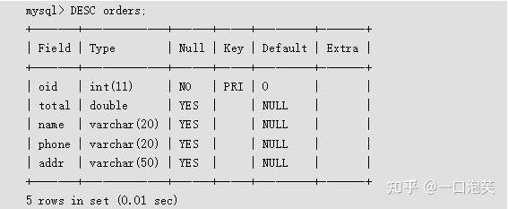 以上执行结果证明主键添加完成。为了进一步验证,使用DESC查看表结构。