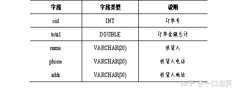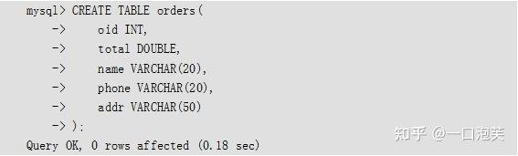 表中列出了订单表的字段、字段类型和说明。创建订单表的SQL语句及执行结果如下。