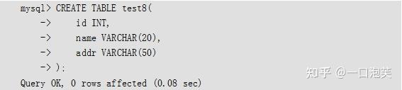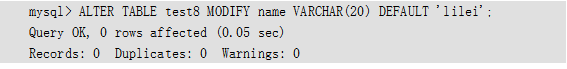 以上执行结果证明test8表创建完成。然后为test8表中的name字段添加默认值约束。