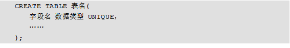 在以上语法格式中,字段名表示需要添加唯一约束的列名,列名后跟着数据类型和UNIQUE关键字,两者之间用空格隔开。