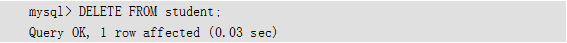 从以上执行结果可以看出,因为subject表中的数据被student表引用,所以无法删除subject表中的数据。此时可以先删除从表中的数据,再删除主表中的数据。首先删除student表中的数据。