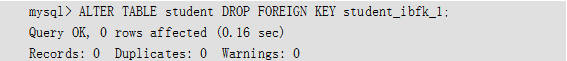 从以上执行结果可以看出,student表的外键约束删除成功。