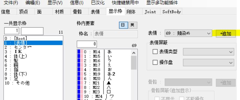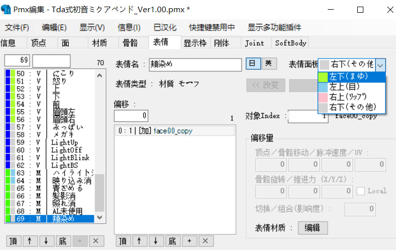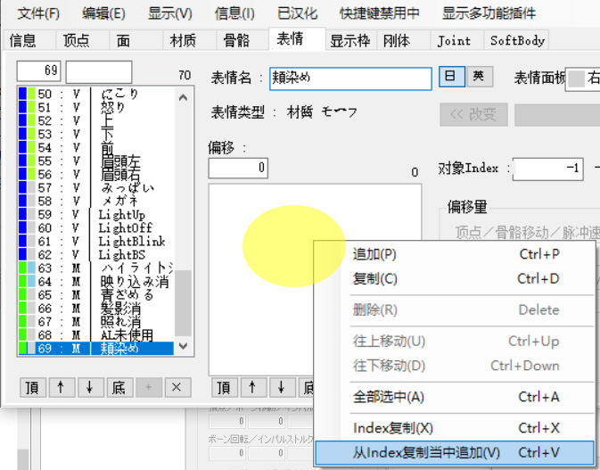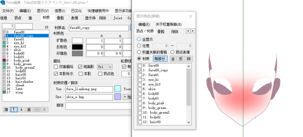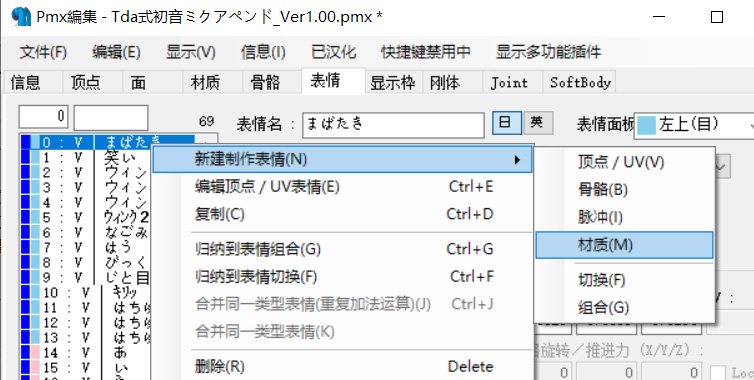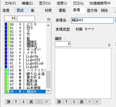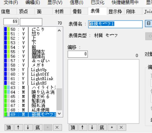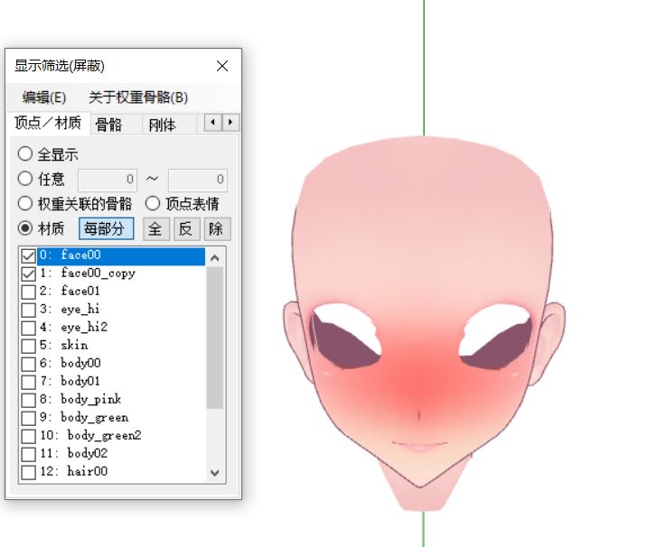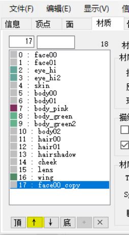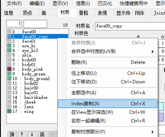 如果使用PMXE本身的材质复制功能,会连面部表情一起多复制一份,造成今后的麻烦
